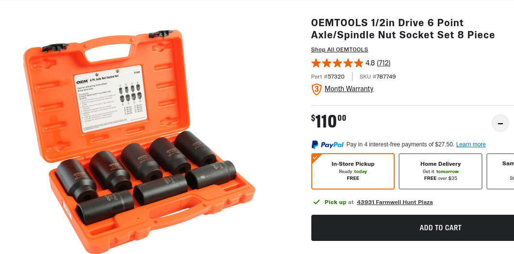 - a cv axle socket kit so I could remove the old knuckle from the truck. I unfortunately did not have a 35 mm socket on hand.