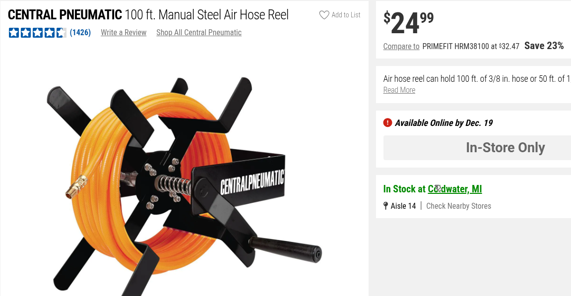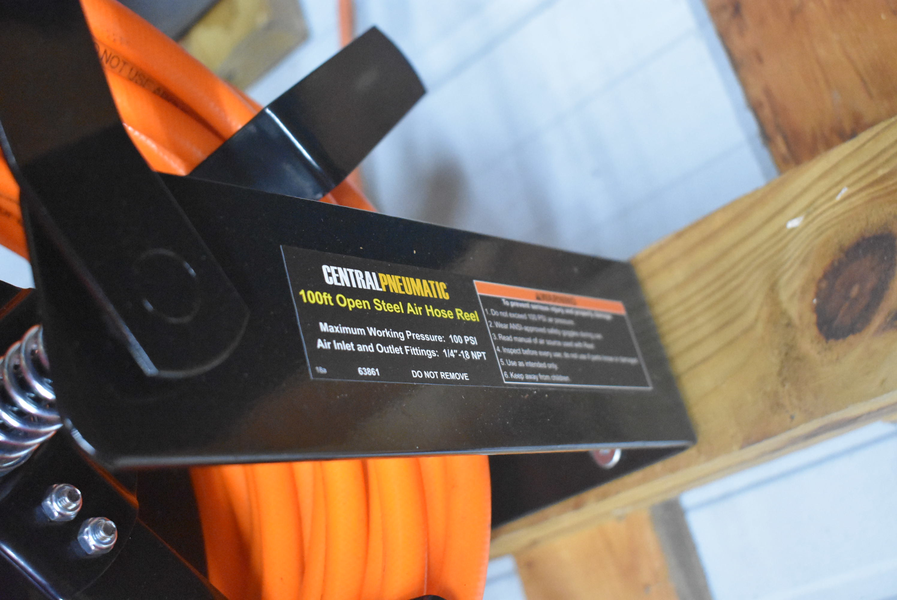 The air hose reel I chose from Harbor Freight is there cheapest air hose reel and you have to manually assemble and wind up your air hose when you're done using the air.