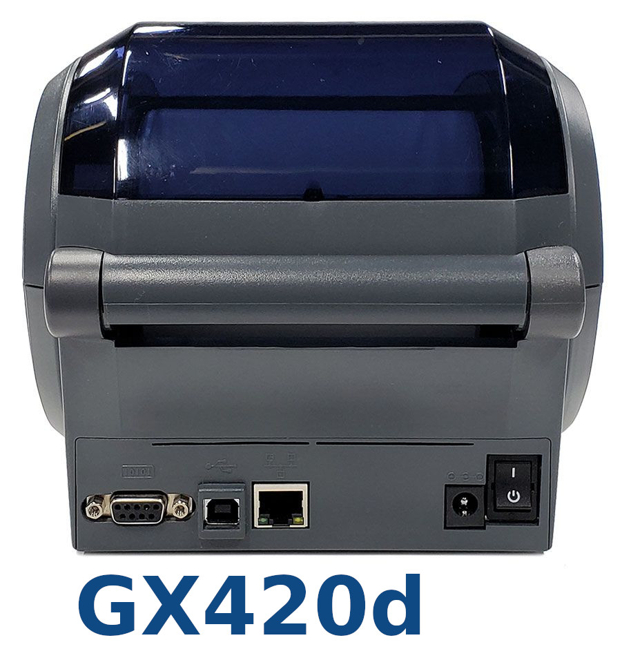 The ZD420 requires a USB connection to operate. Using it over a network requires an external print server where as the GX420d has a built in print server. It has an RJ-45 ETHERNET LAN port. The GD420d has a serial port and a USB port.